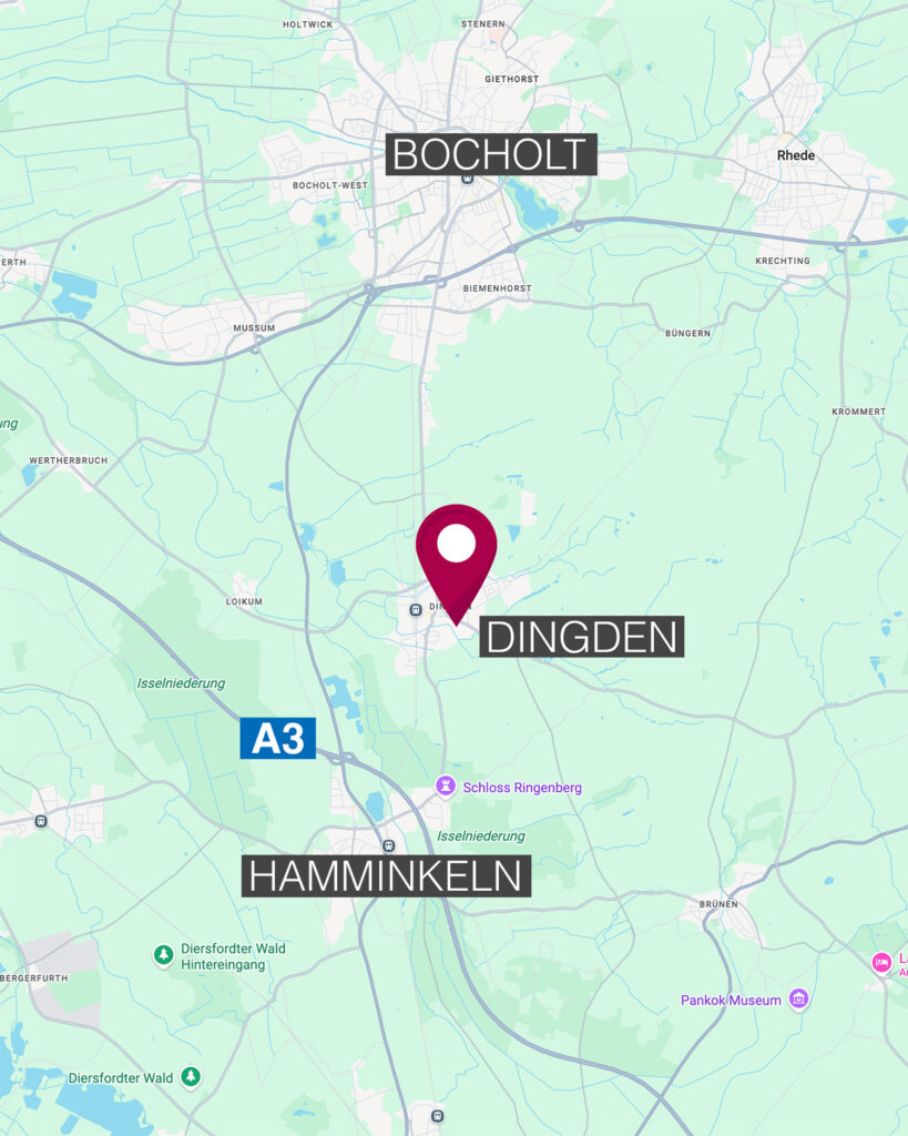 Sie finden uns in Dingden, an der Autobahn A3 gelegen zwischen Bocholt und Hamminkeln/Wesel. Bildquelle: Google Maps