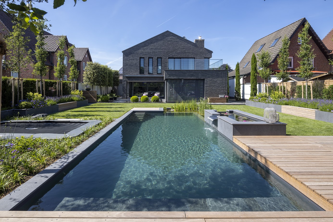 Dieser Schwimmteich ist mehr als ein Gestaltungselement – er ist ein Lebensraum. Ein Ort, an dem Bewegung, Entspannung und Natur harmonisch zusammenfinden. Vom ersten Sprung ins Wasser bis zur stillen Abendstimmung entsteht ein Garten, der jeden Tag ein kleines Stück Urlaub schenkt und dauerhaft Lebensqualität für alle Familienmitglieder schafft.