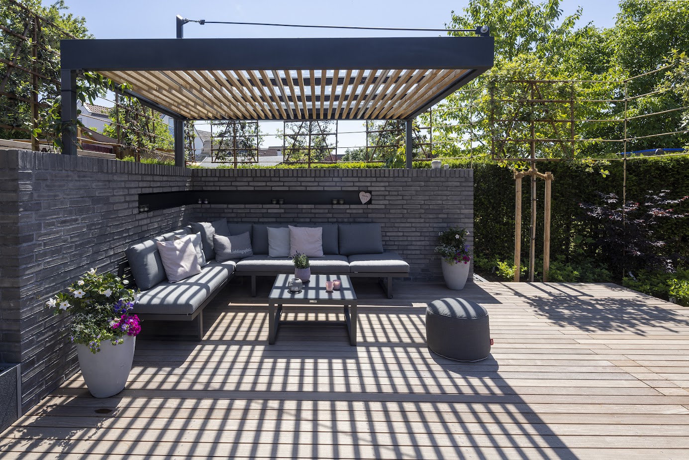Sanfte Massagedüsen und eine Wasserschütte machen das Wasser zum Rückzugsort. Die gleichmäßige Bewegung löst Verspannungen, trägt und beruhigt – ein Gefühl von Schwerelosigkeit, mitten im eigenen Garten. Urlaub, wann immer man möchte.
