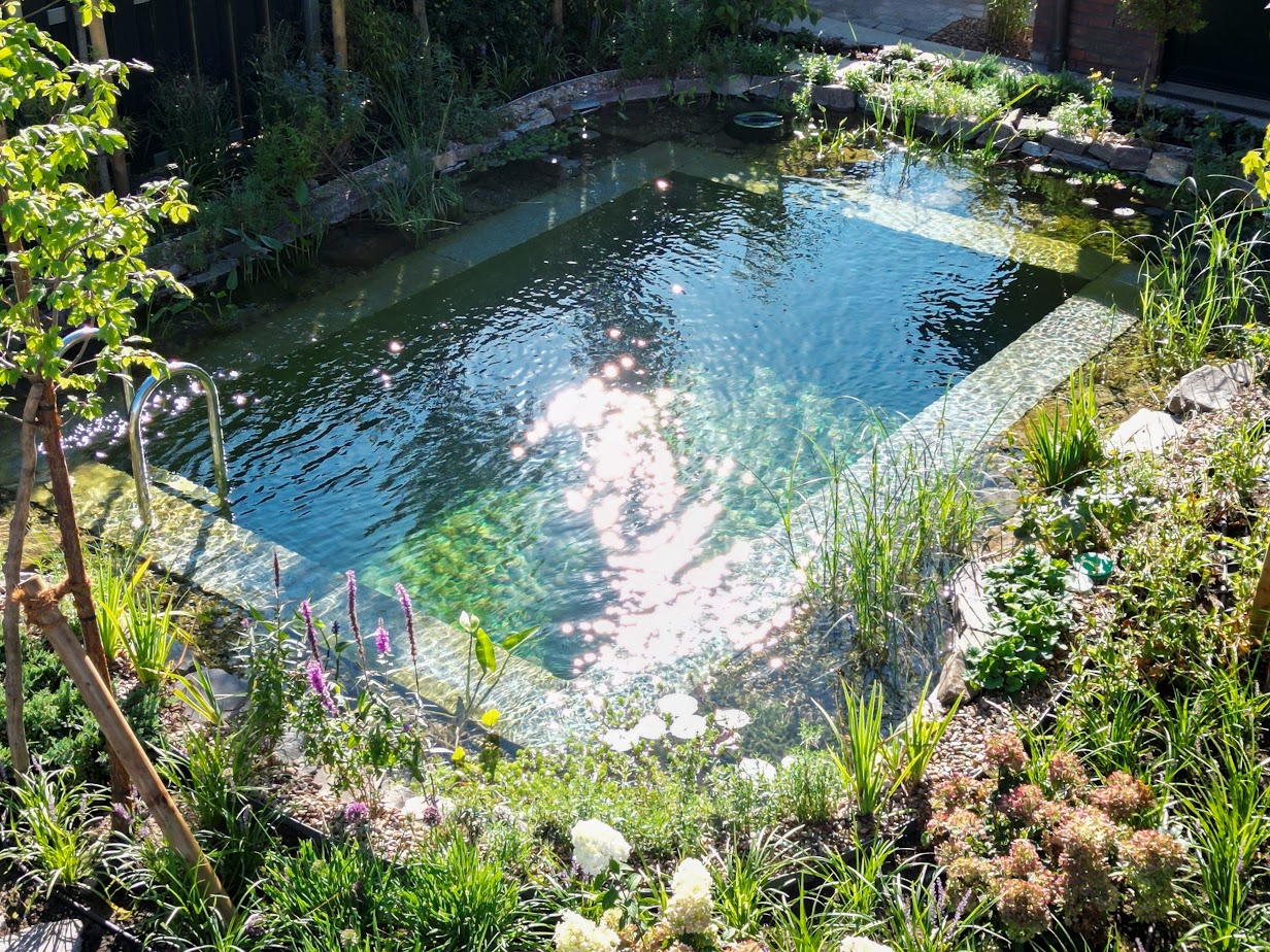 Schwimmteich mit Schildkröten-Senkgarten