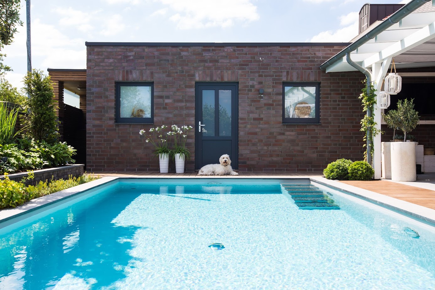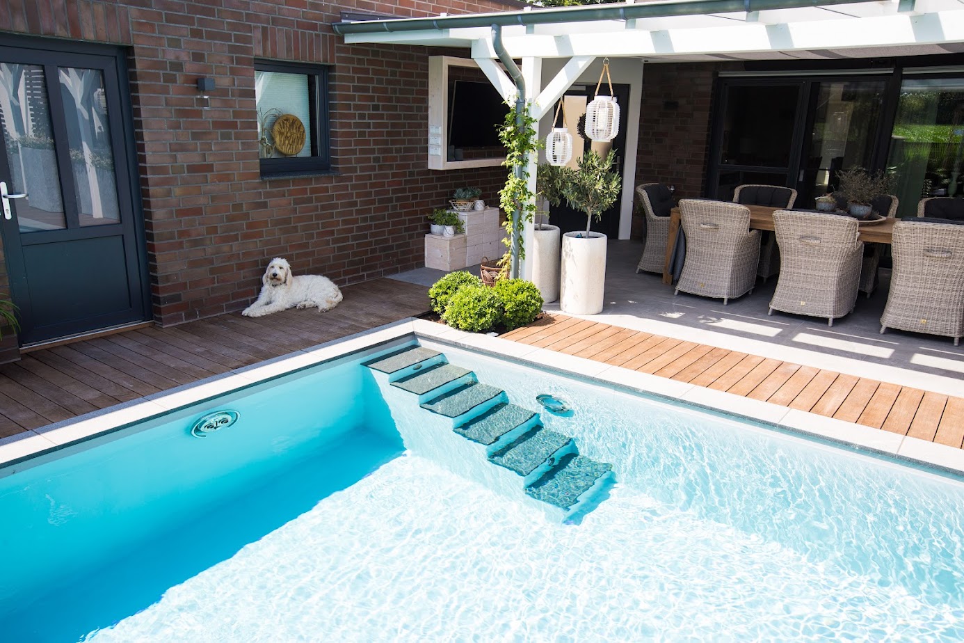 Der Pool wurde bewusst längs zur Terrasse angelegt, um eine fließende Verbindung zwischen Haus und Garten zu schaffen. Die klare Linienführung des Folienpools unterstreicht die moderne Gestaltung und lässt den Garten optisch größer wirken. Durch den nahezu bündigen Übergang zur großzügigen Terrasse entsteht ein harmonisches Gesamtbild, bei dem der Pool jeden Tag präsent ist. Die ruhige Wasserfläche reflektiert Licht und Himmel und verleiht dem Garten zusätzliche Tiefe.