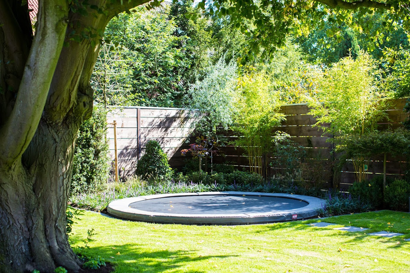 Der Garten wächst mit seinen Nutzern. Kinder spielen geschützt, Jugendliche treffen sich ganz selbstverständlich zuhause und die Eltern finden Momente der Ruhe. Gemüsebeete, Naschgarten und integrierte Spielelemente wie das bodengleiche Trampolin machen den Garten lebendig und alltagstauglich.