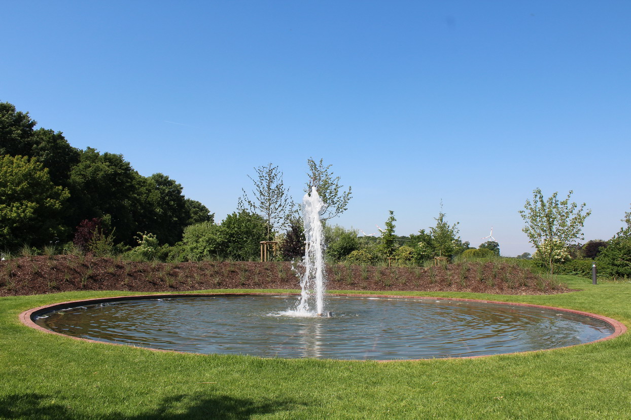 Innerhalb von rund sechs Monaten wurde das gesamte Projekt realisiert. Erdmodellierungen, Wege, Pflanzungen, Mauern, Terrassen und Wasserelemente griffen präzise ineinander. Jeder Schritt folgte dem übergeordneten Konzept – mit dem Ergebnis einer Anlage, die Ruhe ausstrahlt und gleichzeitig Spannung erzeugt.