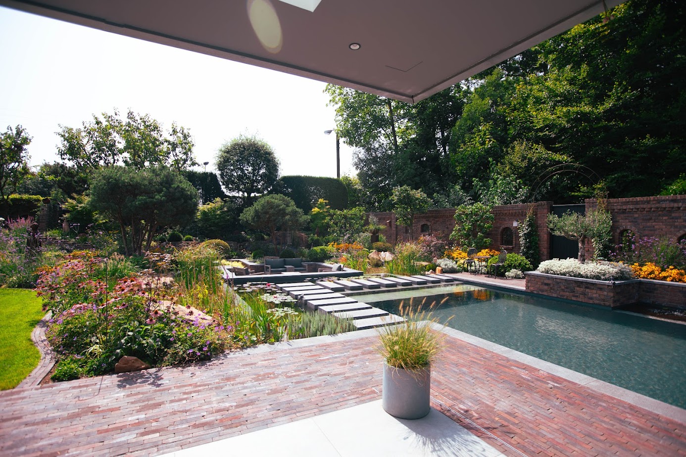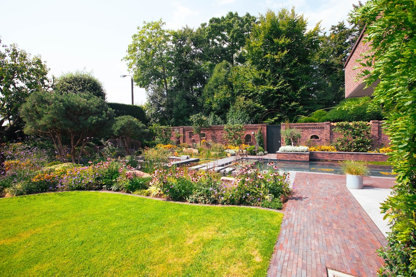 In Wesel entstand ein außergewöhnliches Gartenprojekt, bei dem Architektur und Freiraum von Beginn an gemeinsam gedacht wurden. Nach dem Rückbau eines alten Gebäudeteils schufen ein moderner Anbau und eine exklusive Schwimmteichanlage Raum für eine Gartenlandschaft, in der Alt und Neu selbstverständlich ineinandergreifen.